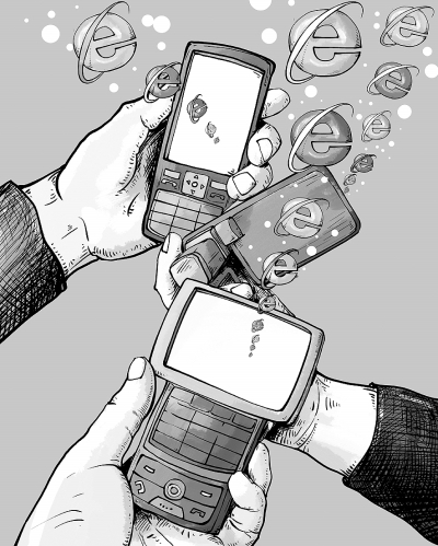 调查发现,手机上网在高校学生中较为普遍。每天都上手机网络的学生比例占了三成,一周3—5次的学生达到一半多。学生们认为,便捷性是他们选择手机上网的最主要因素,有几乎六成的人认为手机上网比电脑方便。在手机上网经常使用的项目的调查中,基本的人际聊天功能区域,达到了调查人数的85%,其次是通过手机网络浏览资讯和新闻,占65%。值得注意的是,通过手机上网发微博的潮流也在日趋盛行,占到45.6%。聊天、资讯和微博成为手机上网的三大功能。
