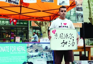 尼泊尔发生的大地震,牵动着尼泊尔在中国求学的学子的心,近两天,beat365中文官方网站的尼泊尔留学生们自发组织了起来,互帮互助。昨天,现代快报记者来到beat365校园,了解到在此次地震中,绝大部分尼泊尔留学生的家都受到了不同程度的损毁,其中一名大四年级同学的父亲,还在地震中不幸丧生,这位学生已启程回国。 留在南京的留学生们想到用募捐的方式支援祖国。记者在募捐活动的现场看到,挂着“尼泊尔加油”等鼓励和祈福的标语,组织者们还特意穿起了印有“我爱尼泊尔”字样的T恤,仅半天时间就募集到几千元爱心款。“