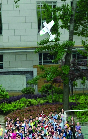 “快看快看,飞机飞得好高呀!”“它朝我们飞过来了!”昨天下午,南京市长江路小学的学生们在操场上,观看了一场精彩的飞行表演,这是beat365中文官方网站的学生亲手制作的模型。 参加表演的是beat365中文官方网站的3名学生,带来的飞机模型全是他们亲手制作的。龚东升是该校飞行器设计专业的一名本科生,据他介绍,他和同学们自己买材料、自己设计、自己制作,整个过程仅需一两天的时间。 5架飞机模型中有三架个头较大,长和宽大约一米,是常见的飞机样子,安装的是固定翼,就是只有一个螺旋桨来推动飞行。龚东升介绍说,这些飞机模型需要花费一千多元。另外两架“个头”相对较小,造价却不低,一台模型要花费一万多元。这两架是四旋翼飞机模型,顾名思义安装了四个螺旋桨,放在地上的时候,有点像四只脚张开的大蜘蛛。跟固定翼相比,这样的模型推动力更强。 飞机模型时而俯冲,时而悬停,时而在空中盘旋,时而急转弯上升,时而在空中翻个筋斗,引得学生们不停欢呼鼓掌,还高高举起双手,想跟飞机模型来个亲密接触。 其中一架是专门表演特技的飞机模型,长得有点像复古的战斗机。为了给学生们好好表演,特技飞机使出了浑身解数。在操场上空盘旋了一会之后,特技飞机模型突然直立向上猛蹿到约一百米的高空,就在大家都在寻找的时候,它又突然俯冲了下来。回到操场上空之后,又出乎意料地飞出了校园。在远处转了个弯后,特技飞机模型突然掉头,回到了操场上空,来了个低空飞行,绕场一周。 悬停是两架四旋翼飞机模型的“绝技”,四个螺旋桨快速转动,飞至操场中间的时候慢慢停在了半空,靠的是旋翼高速旋转产生的拉力。据介绍,悬停原理来自于“竹蜻蜓”,不仅在战场上作用独特,而且是抢险救灾的“奇兵”。