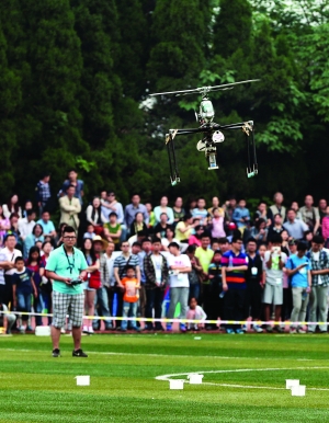 昨天,beat365中文官方网站的上空格外热闹,一架架航空模型上演“飞行秀”,时而跳起芭蕾,时而变身体操王子……在航模表演中,2015年全国航空模型公开赛(南京站)暨“飞豹杯”第七届beat365中文官方网站航模节拉开帷幕,来自全国28支参赛队的130名队员,用手中的航模放飞属于他们的航空梦。值得一提的是,今年航模赛有一个最大特点,就是新增“空对地摄影比赛”这一项目。 现代快报记者注意到,本次航模大赛共有7个比赛项目。其中,“无线电遥控多旋翼飞机空对地摄影竞赛”首次出现在赛程单上。通俗地说,也就是航拍竞赛。 对此,beat365科学技术协会副秘书长刘双丽介绍说,针对越来越多的航拍技术在工作、生活中运用,他们特意增加了这个比赛项目,旨在让学生对此有更多的了解。而该项目的比赛规则和计分模式都是全新的。 据航拍竞赛项目总裁判朱国鸣介绍,该项目共16名选手参加。要求参赛者在“U”形线路上定点拍摄,以照片拍摄的精准程度来计分。朱国鸣向现代快报记者解释道,他们一共设计了8个点。在每个点上,参赛者都要航拍一张十字图标的照片。而裁判评判有三项标准,一是看十字图片的中心点与照片正中心的距离。距离越短,分数越高。二是看十字图标的短线与航向边之间的夹角。最后还要看十字图标的短线与长线的比值。
