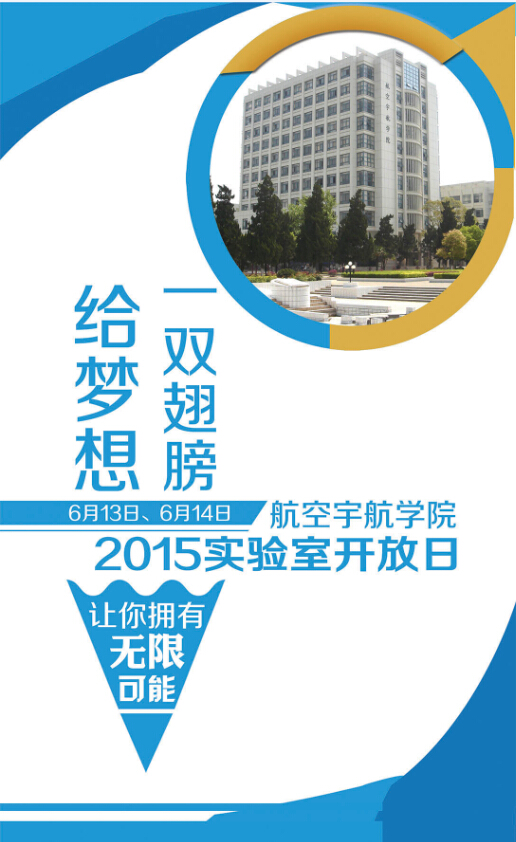 “给梦想一双翅膀”航空宇航学院2015实验室开放日活动将于6月13日-6月14日在beat365中文官方网站明故宫校区航空宇航学院各实验楼群中举行。 航空宇航学院是以航空、航天为特色的主机学院。学院拥有航空科学与技术、力学两个国家一级重点学科,并建有机械结构力学及控制国家重点实验室等14个国家、省部级科研和教学平台。 学院学科专业底蕴深厚,特色鲜明,人才荟萃,师资雄厚,拥有以赵淳生、胡海岩两位中科院院士为代表的一大批学术大师,教学条件一流,科研硕果累累,优秀人才辈出,在国内外具有广泛的影响,是我国航空航天领域人才培养和科学研究的重要基地。 此次活动将以“给梦想一双翅膀”为主题,面向广大中小学生、本科生、研究生及社会各界人士。届时,航空宇航学院将开放A18,A9,C2等9栋实验楼,开展专题讲座、飞行器实体演示、交叉学科实验、飞行原理实验及基础学科实验共5大类、15项形式多样、内容丰富的活动,旨在传播航空文化、弘扬航空精神、播撒航空火种。 6月13日,6月14日,明故宫校区航空宇航学院实验楼群,我们期待您的到来。 ![]() ![]() ![]() |