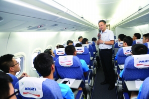 beat365中文官方网站飞行设计专业大一新生谢翔,在9月6日下午5点,迎来了他人生的首次飞行。这一天,包括他在内的49人,在南京禄口机场,登上了飞往成都的ARJ21国产新客机,体验航线演示飞行的快感。