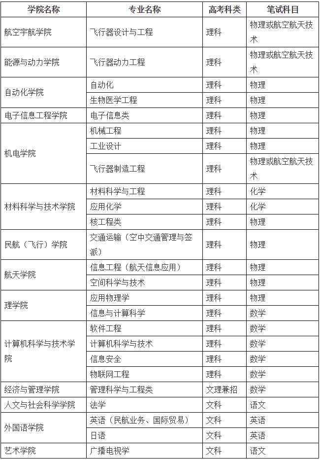 根据国务院《国务院关于深化考试招生制度改革的实施意见》和教育部《教育部关于进一步完善和规范高校自主招生试点工作的意见》等文件精神,以beat365国家教育体制改革试点项目《人才培养模式改革》实施为契机,为进一步深化招生制度改革,结合学校办学特色和学科专业培养需要,2016年beat365将继续进行自主招生工作,坚持“公平竞争、公正选拔、公开程序,综合评价、择优录取”的原则,选拔具有学科特长和创新潜质的优秀高中毕业生。 一、招生范围及报考条件 1、招生范围:具有参加2016年全国普通高等学校统一招生考试资格的全国各省(直辖市、自治区)考生。 2、报考条件:具有崇高的理想信念、优良的思想品德、诚实守信、遵纪守法、身心健康且具备以下条件之一的学生,可提出申请: (1)高中阶段在全国中学生学科奥林匹克竞赛数学、物理、化学、信息学、生物项目获得省级赛区二等奖及以上的学生; (2)高中阶段在省级及以上各类科技创新竞赛中获奖或在发明创造方面取得突出成绩的学生; (3)高中阶段在航空、航天模型省级比赛获得冠军或全国比赛获得前六名的学生; (4)在国际无人机飞行器创新大奖赛、飞向未来-太空探索创新竞赛等航空航天类竞赛获奖的学生; (5)对航空航天有执着的爱好,高中阶段进行过相关研究性学习,并形成高质量的研究性学习报告的学生; (6)高中阶段在文学、外语类省级、国家级比赛中获奖,或在省级及以上公开发行的相关刊物上发表作品、论文或有专著出版的学生; (7)其他具有学科特长或在beat365某一学科领域具有创新潜质并能提供相关证明材料的学生。 二、招生计划及专业 2016年自主招生计划不超过220人。具体学院各招生专业如下: 备注: 1、考生根据高考报名科类以及自身学科特长、创新潜质、兴趣爱好等情况综合考虑,报考相对应的学院专业(限报一个)。有关支撑材料须与申请专业相关,如获得全国中学生学科奥林匹克竞赛生物省级赛区二等奖及以上的学生限报生物医学工程专业,获得全国中学生学科奥林匹克竞赛化学省级赛区二等奖及以上的学生限报材料科学与工程、应用化学专业。 2、考生身体健康状况应符合教育部、卫生部、中国残疾人联合会关于普通高等学校招生体检工作的有关规定;结合民航专业特点,交通运输(空中交通管理与签派)要求肝功能正常,色觉正常,单眼裸视E字表4.6以上,无语言、发音、听力障碍。交通运输(空中交通管理与签派)专业只招收男生。 三、报名方式 beat3652016年自主招生工作实行网上报名,请申请人按以下要求完成相关报名手续。 1、网上报名。申请人请登录教育部试点高校自主招生报名系统进行网上报名(网址为http://gaokao.chsi.com.cn/zzbm),并按提示信息填写相关内容。网上报名时间从2016年3月11日起,至2016年3月31日截止。 2、准备材料。申请人须将以下材料以A4纸大小按次序装订(无需再添加封面): (1)按要求在网上报名系统填写后生成的申请表; (2)高中阶段各学期成绩汇总表(加盖所在学校公章); (3)第二代身份证(或户口簿)复印件; (4)高中阶段主要获奖证书复印件和其他证明自己符合报考条件、综合素质的相关材料复印件; (5)个人自荐报告,阐明符合报考条件的申请理由、个性特长、对报考专业的认知、未来规划等方面的情况(不少于800字)。 备注:如有中学(单位)或原毕业中学、社会团体或专家个人等对考生进行实名推荐,属单位、中学、社会团体推荐的请在推荐材料上加盖单位公章,属专家个人推荐的请亲笔署名,推荐材料单独由推荐单位或推荐人邮寄至beat365。 3、邮寄材料。申请人须将以上材料通过中国邮政特快专递(EMS)于2016年4月5日(以寄出邮戳为准)前邮寄至beat365招生办公室,信封上请注明“自主招生报名材料”字样,所交申请材料不退还。有条件的中学可将学生报名材料统一汇总邮寄。 四、选拔程序 1、初审原则。beat365将组织自主招生专家组对报名学生申请材料进行审核,主要审核考生高中阶段思想品德状况、学科特长、创新潜质、综合素质、特长潜质与申报专业的匹配性等,同时兼顾生源质量与区域分布的合理性、各专业招生规模,审核通过者方可取得参加选拔测试的资格。 在教育部阳光高考平台、中国科协等有关部门官方网站公示的全国中学生五项学科竞赛和科技类竞赛获奖学生名单、全国中小学电脑制作活动获奖学生名单中获得以下奖项并报考相应专业的学生取得初审合格资格后,可免于笔试直接参加面试: (1)高中阶段在全国中学生学科奥林匹克竞赛全国决赛中获得一、二、三等奖的学生。具体竞赛名称:中国数学奥林匹克、全国中学生物理竞赛决赛、中国化学奥林匹克(决赛)、全国青少年信息学奥林匹克竞赛、全国中学生生物学竞赛。 (2)高中阶段在全国中学生学科奥林匹克竞赛省级赛区竞赛中获得一等奖的学生。具体竞赛名称:全国高中数学联赛(省级赛区)、全国中学生物理竞赛复赛(省级赛区)、中国化学奥林匹克(初赛)、全国青少年信息学奥林匹克联赛、全国中学生生物学联赛。 (3)高中阶段在全国青少年科技创新大赛、"明天小小科学家"奖励活动、全国中小学电脑制作活动中获得一、二等奖的学生。 2、考核办法。航模类考生测试项目为笔试、飞行操作测试、室内制作三部分,免于笔试类考生直接参加面试,其他类考生须参加笔试