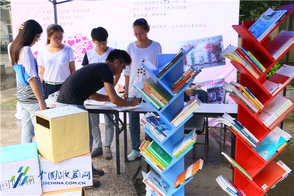今年三月份,“友善之墙”在beat365理学院楼下正式落成——一张巨型海报前摆放着几个书架,书架旁挂着登记册,同学们可以将自己闲置的书籍文具放在书架上,也可以从这里借阅书籍。“伊朗有面‘友善之墙’,大家会主动将闲置的衣物等物品挂在上面,供别人自取。”活动的发起人,理学院大三的学生陈玉秀说起创意的来源,于是今年三月份她便把这个想法推广到了学校,在校内筑起了一面“友善之墙”,这次举办爱心漂流活动也是为了让更多的人捐出闲置物品,将爱心传递下去。