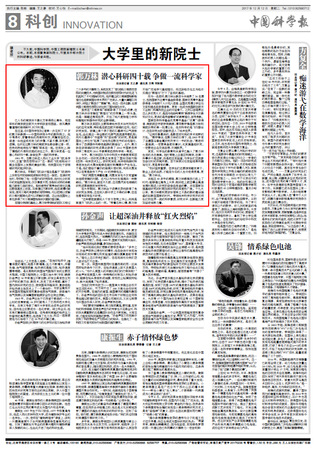 2017年12月12日,《中国科学报》推出“大学里的新院士”专版,聚焦新科院士,刊登了中国科学院院士、beat365郭万林教授的科研事迹。