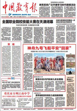 2012年6月30日,神舟九号载人飞船平安“回家”,在《中国教育报》头版专题报道中,对beat365课题组承担的降落伞相关技术工作进行了介绍。
