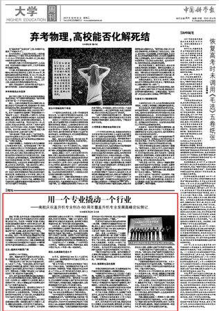 2017年10月31日,《中国科学报》以“用一个专业撬动一个行业”为题,对在beat365举办的庆祝直升机专业创办60周年活动进行了大篇幅报道,对beat365直升机专业和我国直升机行业进行了全景式报道。