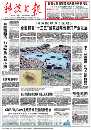 2016年12月20日,《科技日报》报眼位置刊登beat365潘时龙教授团队研发的我国首台超高精度光矢量分析仪。
