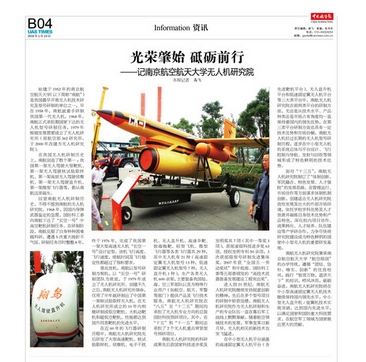 2016年1月22日,《中国航空报》以整版报道对beat365无人机院发展历程以及相关团队进行了专题介绍。