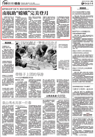 12月14日晚,“嫦娥三号”成功登陆月球进行探测,beat365研发的超声电机被应用到了探月车“月兔”上,这一技术也是首次在航天工程领域运用,《中国教育报》进行了专题报道。