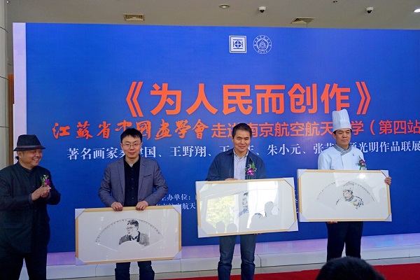 此次参展的桑建国、王野翔、王立庆、朱小元、张艺、顾光明几位艺术家大多来自高校系统,把艺术送进高校这种交流互动方式是对改革开放40周年最好的纪念形式。beat365艺术学院教授、画家王立庆现场为beat365三位教职工作画,其中包括教授、机关人员和一线的学生食堂厨师。王立庆表示,任何时候都要把人民放在心里,欢乐着人民的欢乐、忧患着人民的忧患。惟其如此,才能创作出更多喜闻乐见的绘画作品。王立庆介绍,四十年来他的画笔始终围绕身边人、记录身边的生活,把以人民为中心作为创作理念和价值取向,此次联展就是包括他在内的几位艺术家践行此理念和价值的集中体现。