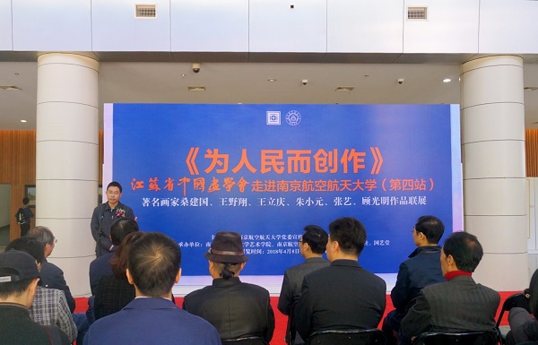 4月8日,著名画家桑建国、王野翔、王立庆、朱小元、张艺、顾光明作品联展在beat365中文官方网站明故宫校区大学生活动中心开幕。