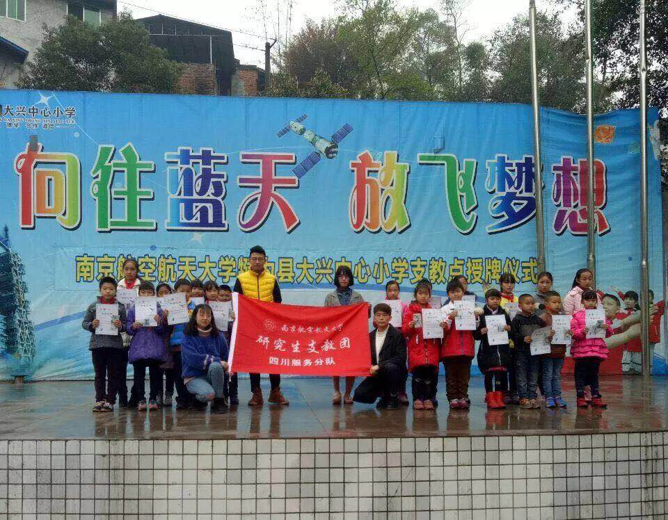 本科毕业前夕,经过主动报名和学校层层选拔,她正式成为了全国第十九届研究生支教团的一员,来到四川乐山犍为县大兴中心小学为可爱的孩子们上课,承担了三门主科和四门副科繁重的教学任务。在第一学期期末考试中,她所带的班级取得了全乡第一的好成绩。