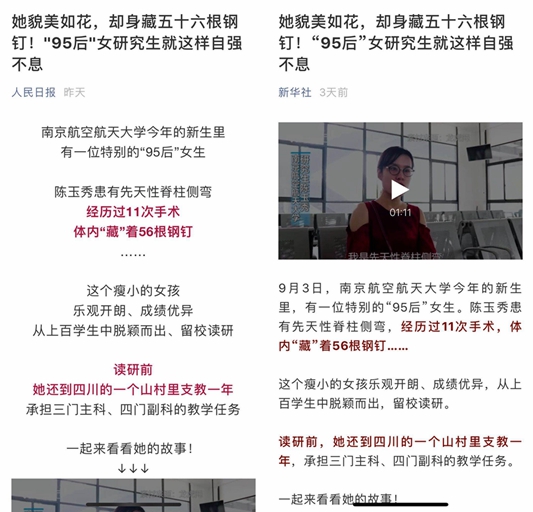 人民日报:她貌美如花,却身藏五十六根钢钉!95后女研究生就这样自强不息