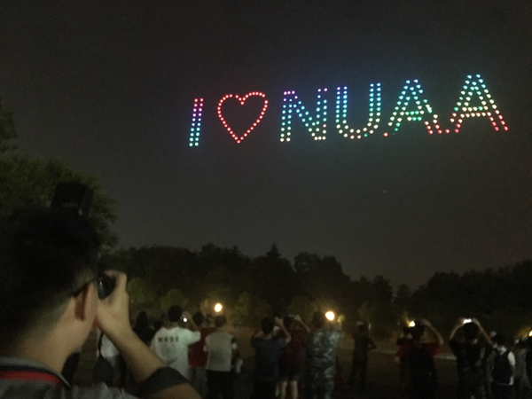 “效法羲和驭天马,志在长空牧群星。”9月21日晚8点,三百架无人机在beat365中文官方网站西操场上准时升空,上演了长达八分钟的酷炫表演。无人机伴着灯光时而排列成精准的“beat365中文官方网站”字样,时而变换NUAA、纸飞机等图案,为前来观赏的人们带来了一场精彩的视觉盛宴。