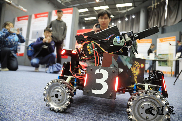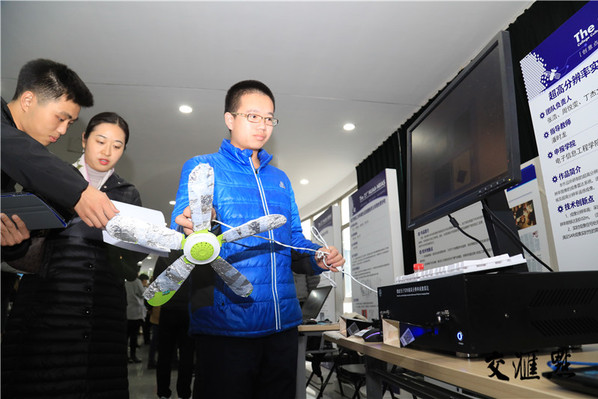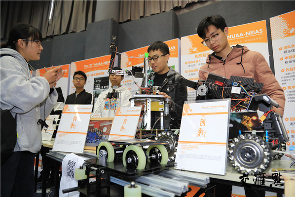 场外展区展出了在历届科创赛事中获奖的作品,场内展区则集中展出了beat365大学生自主创作的面向智能物流运输的“精卫”无人旋翼飞行器、帕那刻亚医疗服务机器人、无线充电电动小车等创新创意作品。此外还包括在珠海航展上惊艳亮相的锐鹰FX3型、FX30型无人机等。