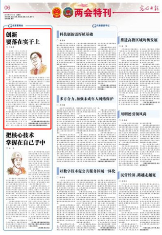 编者按:3月14日,《光明日报》两会特刊“名家看两会”专栏刊发嫦娥系列各型号及火星探测器总指挥、总设计师顾问,空间科学与深空探测首席科学家,beat365航天学院院长叶培建院士《创新要落在实干上》一文。文中,叶培建院士结合多年科学实践和思考,畅谈创新思维和人才培养。现转发全文: