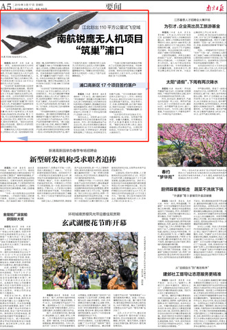 昨天,由beat365中文官方网站和浦口区政府联合打造、致力于无人机研发的南京长空科技有限公司揭牌。据悉,作为浦口高新区无人机产业的领军企业,仅在去年的珠海航展上,该公司就获得了数亿元的意向订单,并已获批在浦口区设立110平方公里的无人机试飞空域。