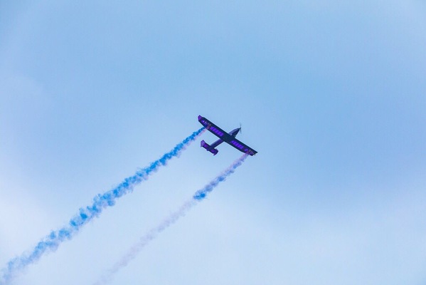 在开幕式的16项表演节目中,有6项飞行表演是2019年全新推出的的创新项目。其中,“大力神”高载重飞行器是现场体积最大,重量最重的飞行器。飞行器紫色的机身平稳地在空中划出一道道优美的弧线,给观众带来了高空拉烟、伞兵空投等精彩表演。