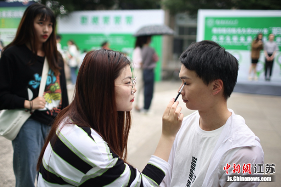“礼仪指导”是现场一道靓丽的风景线。同学们不仅了解礼仪知识,还可以现场体验化面试妆、打领带。中新社记者 泱波 摄