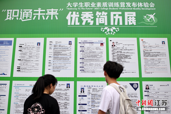 展示的大学生优秀求职简历引人注目。中新社记者 泱波 摄