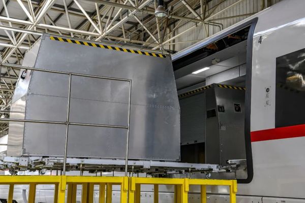 2020年12月,全球首列时速350公里高速货运动车组在河北唐山正式下线。