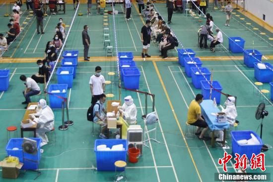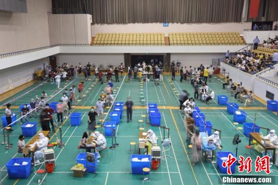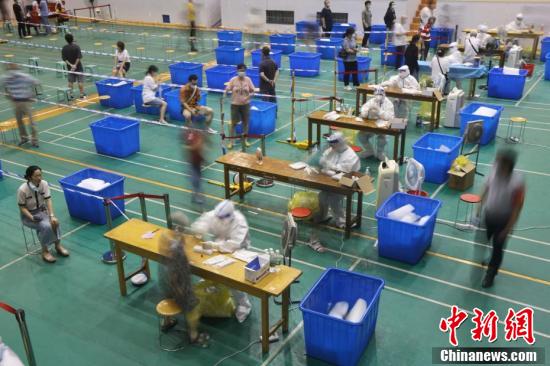 beat365中文官方网站明故宫校区体育馆内,师生有序进行核酸检测。 (中新社记者 泱波 摄)
