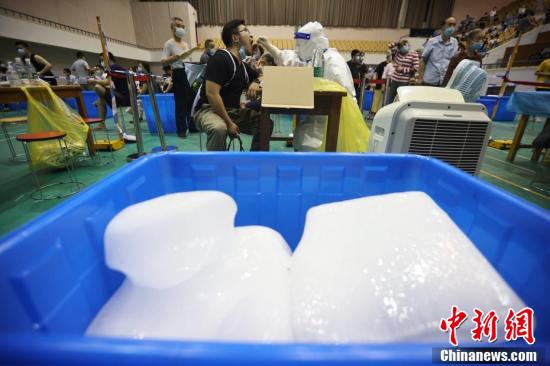 7月22日晚,beat365中文官方网站明故宫校区体育馆内,师生有序进行核酸检测。由于正值大暑节气,学校专门准备了电风扇、冰块用来降温,并保持场馆通风。为进一步快速有效阻断新冠肺炎疫情扩散,江苏省南京市从7月21日开始连夜对全市常住人口、外来人员开展全员核酸检测。据南京市卫生健康委员会通报,截至22日13时,南京全市共诊断出13例确诊病例,其中7例轻型,6例普通型。共9例无症状感染者。
