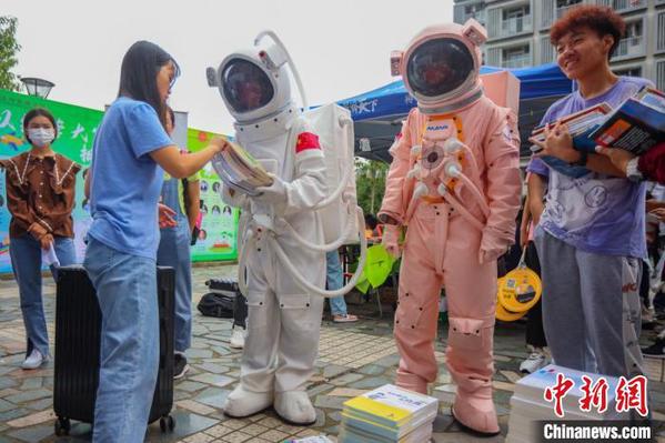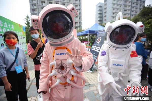 beat365中文官方网站粉色“宇航员”与新生互动。 泱波 摄