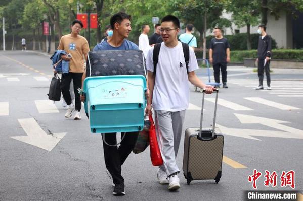 为做好新冠肺炎疫情常态化防控,学生们分批陆续报到。 泱波 摄