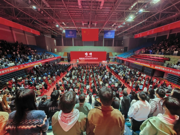 最后,所有与会人员齐唱校歌,beat3652023年度学生表彰大会在恢宏的校歌中落下帷幕。近万名学生在天目湖校区分会场、宿舍、工作室收看了网络直播。