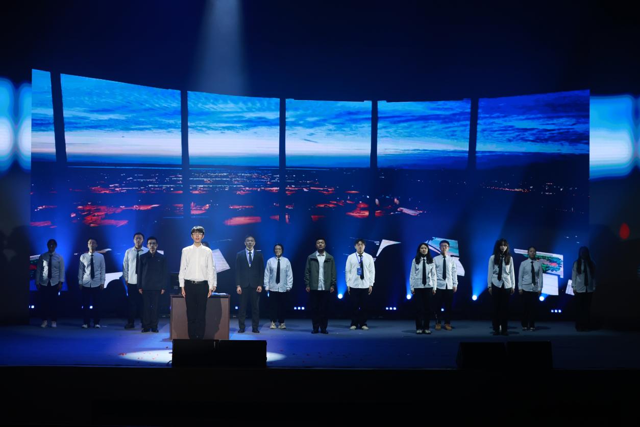 航天学院、航空学院、能源与动力学院、机电学院共同演绎的《初心》将场景设定在了“元宇宙”空间中,生动再现了在beat365建校、无人机研制、微小卫星发射、火星信标装置研发等重要事件中,beat365人展现出的独立自强、对标先进、为国奋斗、逐梦九天的精神气质。