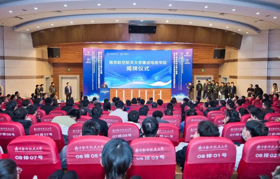 单忠德、郑有炓、姜斌、陆志鹏、张红岩、谭晓平、刘宇雷、吴启晖共同为集成电路学院揭牌。