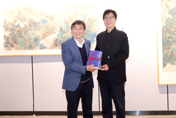 章剑华向砚湖美术馆赠送其最新创作的作品——长篇纪实文学《向苍穹——中国天文发展三部曲》,该书用文学的样式记录天文航天科学事业的发展历程和丰硕成果,被天文学家称为我国第一部天文学的文学通史,正是艺术与科学结合的产物。施大宁代表学校接受了赠送。多位校友和老师向砚湖美术馆捐赠了作品,刘宇雷为校友及教师代表颁发捐赠证书。