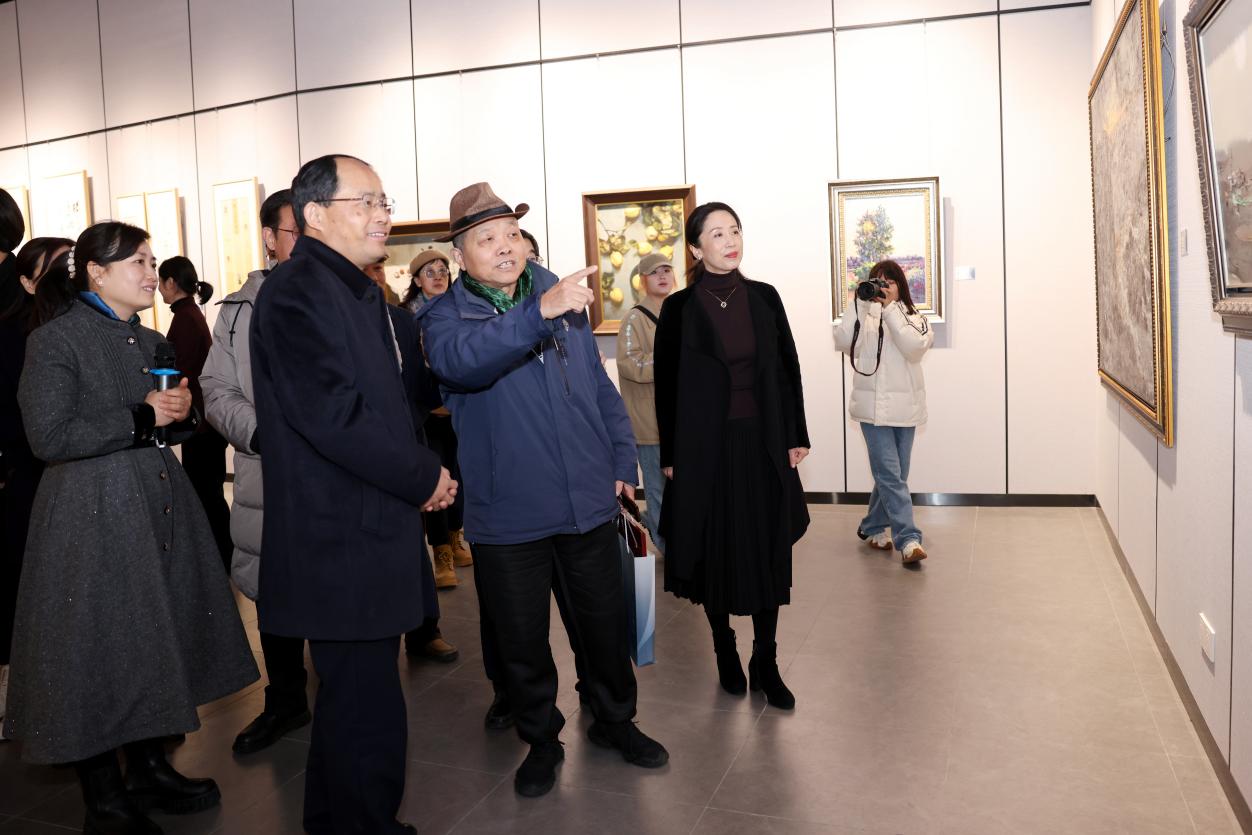 单忠德代表学校对所有支持、参与学校美育工作和砚湖美术馆建设的领导嘉宾、师生员工表示诚挚感谢。他表示,习近平总书记指出,美术、艺术、科学、技术相辅相成、相互促进、相得益彰。学校举行砚湖美术馆开馆美术作品展暨美术专业教师备课展,是深入贯彻习近平总书记教育科技人才重要论述的重要举措,是持续推进校园美育的又一项实践成果,也是学校“空天艺海·大师引航”美育课程的拓展延伸。希望学校各部门、各学院继续投入更多力量,将校园文化活动办得更多、办得更好,更好繁荣校园文化、服务人才培养,引导广大师生坚定文化自信、厚植家国情怀、提升人文艺术素养,不断开拓学校美育工作新局面。