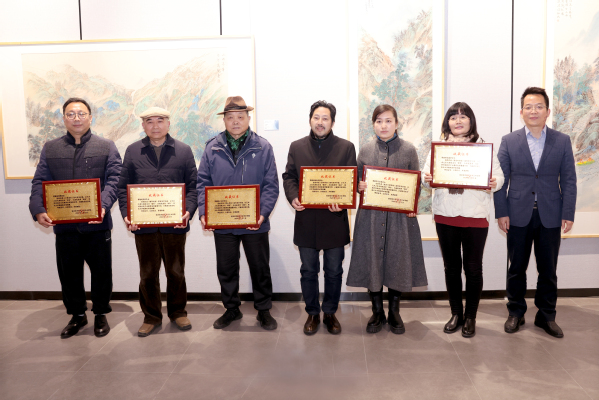单忠德、章剑华、张捷、吴春涛共同为“砚湖美术馆”揭牌,开馆仪式后,与会嘉宾参观了“美术专业教师备课展”。