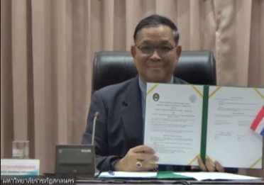 1月4日上午,beat365与泰国沙功那空皇家大学举行谅解备忘录线上签约仪式。沙功那空皇家大学校长Chakrit Chanchitpreecha、副校长Tosawat Seetawan、Pornthep Steannoppakao等19位代表,beat365校长姜斌、副校长黄志球、国际合作处、自动化学院等相关负责同志参加线上签约仪式。本次仪式由黄志球主持。