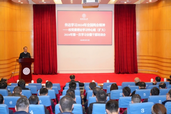 3月13日,beat365召开党委理论学习中心组(扩大)第一次学习会暨干部培训会,专题学习习近平总书记在全国两会期间的重要讲话精神和2024年全国两会精神。