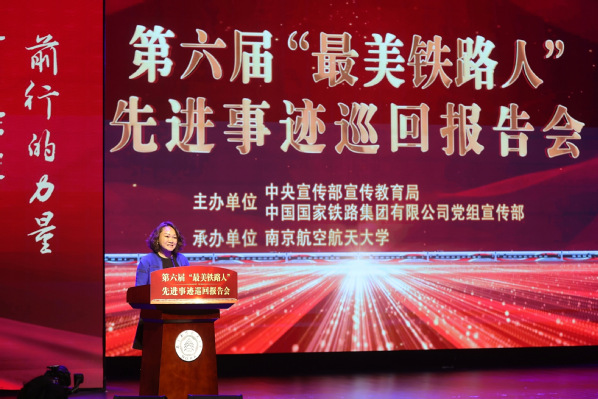 报告会上,用匠心为动车保驾护航的中国铁路上海局集团有限公司上海动车段调试车间列调一班工长张华、用心守护环岛高铁信号安全的中国铁路广州局集团有限公司海口综合维修段海口综合维修车间信号工王笑冰、为高铁列车装上强劲“中国心”的中车株洲电力机车研究所有限公司正高级工程师陈燕平、一心为民的好铁警广州铁路公安局惠州公安处惠来站派出所三级警长朱少铭,以及为旅客运载幸福的中国铁路上海局集团有限公司上海客运段高铁三车队业务员顾蓉等一行5人,向师生倾情讲述“最美铁路人”攻坚克难、精益求精、为民服务、执着坚守的“最美故事”,展现铁路人的“最美”风采。
