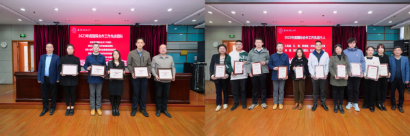 姜斌、施大宁为2023年度国际合作工作先进团队和先进个人颁发了荣誉证书。