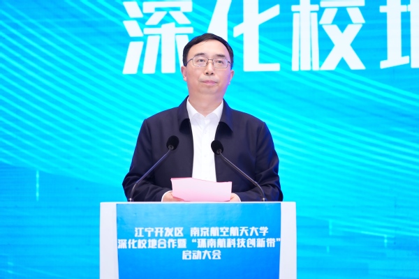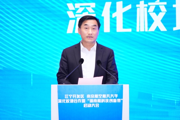 姜斌代表学校向出席活动的各位领导嘉宾表示热烈欢迎,向江宁区委区政府长期以来给予学校建设发展的大力支持表示衷心感谢。他指出,从学校将军路校区的筹建时期开始,beat365就与江宁结下了不解之缘,双方在创新平台共建、产学研合作、科技成果转化等方面都开展了一系列务实合作对接,取得了一系列重要合作成果,有力支撑推动了地方社会经济发展。他表示,此次校地双方共建环beat365创新带,将进一步聚焦科技创新前沿,依托各自优势加快构建产学研用高效协同、深度融合的创新载体,打造具有影响力、引领力、品牌效应的校地合作示范区。希望校地围绕环beat365科技创新带建设,进一步加强对接、细化合作,在机制构建、人才引培、技术创新、产业转化上持续发力,共同打造人才共育、项目共当、资源共用、成果共享、产业共培的高品质创新生态涵养地,更好服务支撑校地高质量发展,为培育发展新质生产力提供强劲动能。