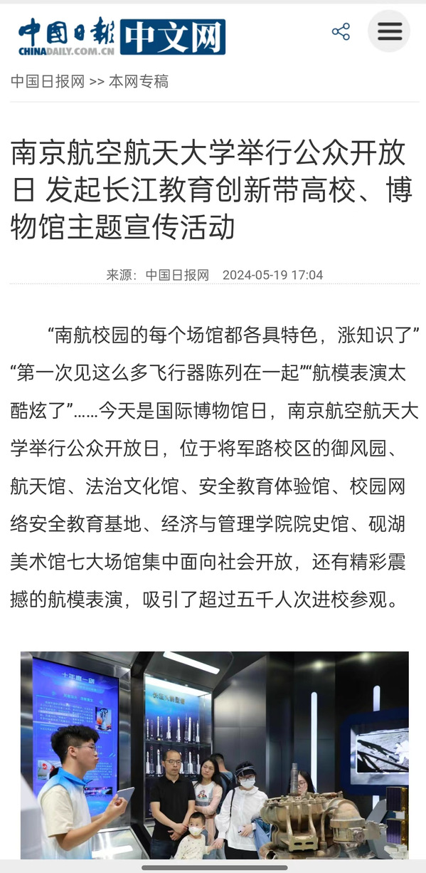 位于将军路校区的御风园、航天馆、法治文化馆、安全教育体验馆、校园网络安全教育基地、经济与管理学院院史馆、砚湖美术馆7大场馆集中面向社会开放,并举行两场航模表演,吸引了超过5000人次进校参观。