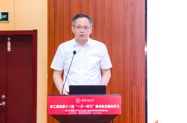 杭育新以《养成遵规守纪自觉,争做优秀学生工作者》为题,从深刻认识党的纪律建设的重要性、准确把握纪律建设的丰富内涵、以实际行动践行纪律建设要求三个方面作专题辅导报告。他分析了提高党纪学习成效要解决“三不”问题、分享了习近平总书记关于廉洁的重要论述、解读了高校师生涉腐的重点领域与典型案例、指出了青年人易存在的问题与解决路径。他强调,全体学生工作人员要增强学习本领、创新本领、群众工作本领、狠抓落实本领,强党性、知敬畏、常律己、勇担当,做到自身正、自身净、自身硬,推动学校党委关于开展党纪学习教育的统一要求在学工系统落细落实、见行见效。