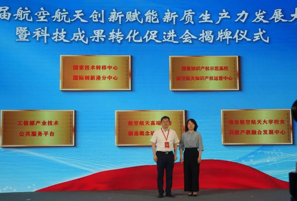 吴启晖、李蓓共同为国家技术转移中心国际创新港分中心、国家知识产权示范高校航空航天知识产权运营中心、工信部产业技术公共服务平台、航空航天高端装备制造概念验证中心等4个成果转化公共服务平台和beat365中文官方网站校友科教产教融合发展中心等揭牌。