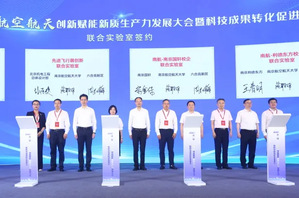 在钱雪松、姜斌见证下,黄志球与蒙有为签署了《科技成果转化合作协议》,在刘伯超、张星、吴炜、钱雪松、姜斌、周勇的见证下,直升机动力学全国重点实验室、先进成形技术与装备全国重点实验室、宇航空间机构全国重点实验室共3个全国重点实验室,江苏省高性能构件激光增材制造工程研究中心、航空发动机热环境与热结构工业和信息化部重点实验室、多功能轻量化材料与结构工信部重点实验室、江苏省微小卫星态势感知与操控创新平台共4个省部级创新平台,先进飞行器创新联合实验室、 beat365-威海克莱特通风冷却系统应用技术联合实验室、beat365-南京国轩高科校企联合实验室、beat365-利德东方校企联合实验室共4个校企联合实验室,通用入股江苏省先进复合材料技术与装备创新中心、航空器分离式应急数据记录系统、南京快线航空等3个项目签约落地。