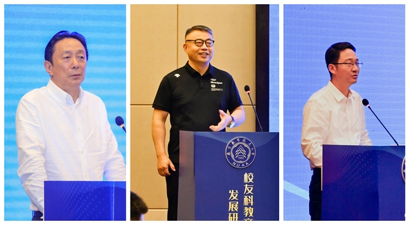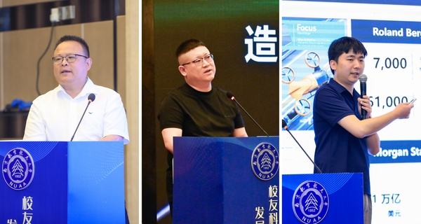 在主题报告环节,三位校友企业家分别作了主旨报告。beat3651999级校友、亿维特航空科技有限公司董事长任文广作了题为《做低空经济领航者》的报告,介绍了亿维特创业团队专注于电动垂直起降载人飞行器研发、制造,从初创企业快速成长为江苏低空经济代表企业的创业故事。beat3651999级校友、南京硅基智能科技有限公司董事长司马华鹏以《发展新质生产力,创造一亿劳动力》为主题,介绍了以“碳基生命的硅基化”作为愿景,专注于AI技术深度研发和落地应用的事业发展故事。beat3652009级校友、沃飞长空科技有限公司产品总监屠强围绕《科技创新,助力低空经济加速腾飞》介绍了沃飞长空以低空出行为核心,为全国低空经济产业链构建与城市立体出行商业生态圈不断创新,快速发展的创业历程。