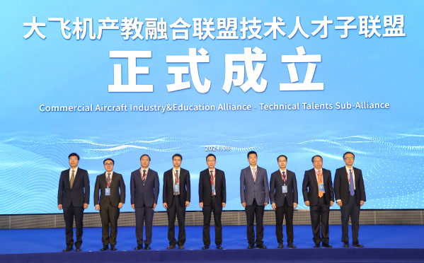 在COMAC国际科技创新周开幕式上,徐正扬共同为大飞机产教融合联盟-技术人才子联盟揭幕,出席了大飞机产教融合联盟第一次理事会,并为工程硕博企业导师颁发聘书,表决通过联盟理事会成员变更、理事会章程等。联盟的成立标志着人才培养与大飞机产业发展相互融合、相互促进迈上了新的台阶。
