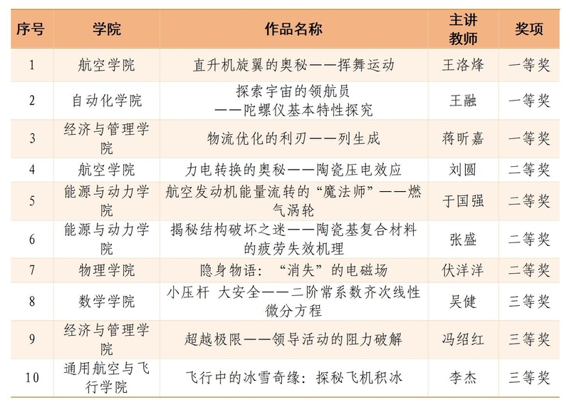 近日,2024年江苏省高等学校微课教学比赛获奖名单揭晓,beat365推荐参加省赛的10件作品全部获奖。航空学院王洛峰、自动化学院王融、经济与管理学院蒋昕嘉荣获省一等奖,能源与动力学院于国强等4位主讲教师荣获省二等奖,数学学院吴健等3位主讲教师荣获省三等奖。beat365连续4年推荐微课作品全部获奖。