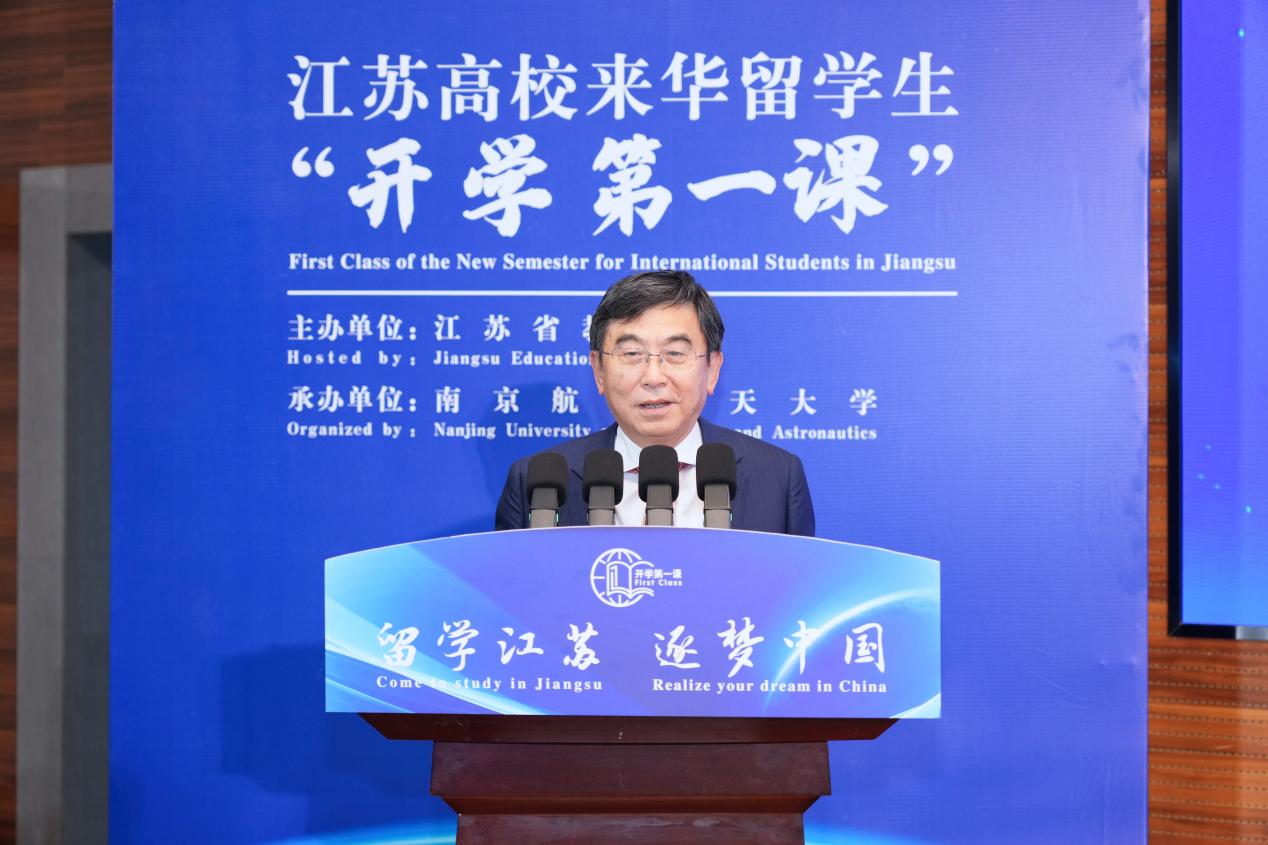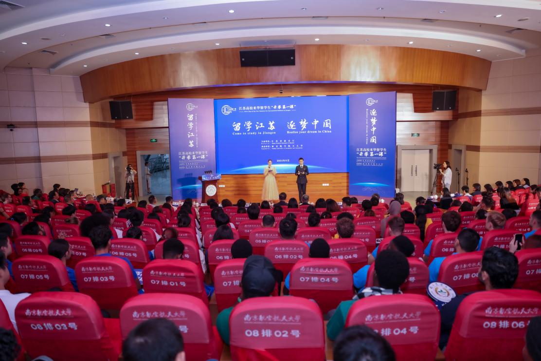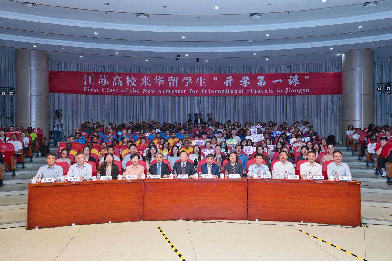 9月26日,由江苏省教育厅主办、beat365中文官方网站承办的“留学江苏 逐梦中国”2024年江苏高校来华留学生“开学第一课”在beat365将军路校区举行。省教育厅副厅长杨树兵、省外办副主任金尚军、省公安厅出入境管理局政委施霄慧,副校长施大宁,党委常委、宣传部部长、教师工作部部长王晖出席活动。来自南京大学、东南大学、苏州大学、南京医科大学、beat365中文官方网站、河海大学、江苏大学等全省12所高校的来华留学生培养相关部门负责人和留学生代表近400人出席了此次活动。