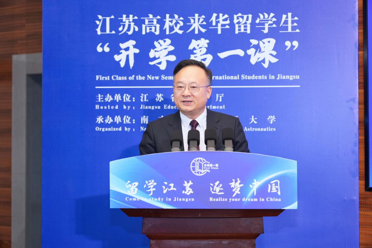 杨树兵指出,此次江苏首次举办全省来华留学生“开学第一课”活动,旨在激励同学们站在新起点,奋进新征程,取得新进步。他介绍,江苏是经济大省、文化大省和教育大省,是外国留学生来华留学的主要目标省份之一。他对留学生们提出三点希望:一是珍惜在校时光,认真学习、提升自己、学有所成、服务社会;二是积极参加文化交流活动,亲身感受江苏悠久的历史文化和经济社会发展巨变;三是担当使命,积极发挥桥梁纽带作用,多和家人朋友分享中国故事、江苏故事,成为增进国家间友谊与交流的使者。
